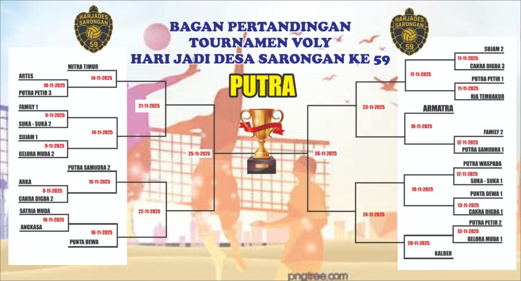Suasana hangat dan penuh antusiasme menyambut senja di Lapangan Bola Voli Armatra Sport Center, Sabtu (08/11/2025). Sorot lampu lapangan yang terang benderang berpadu dengan gemuruh sorak penonton menandai dimulainya sebuah event olahraga bergengsi di wilayah selatan Banyuwangi: Pembukaan Turnamen Voli Cup Desa Sarongan 2025. Turnamen ini digelar dalam rangka memeriahkan Hari Jadi Desa Sarongan yang ke-59, sebuah usia yang matang penuh dengan kearifan lokal dan semangat membangun.